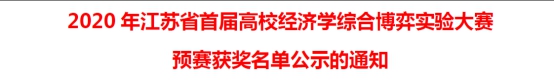 2020年11月14号,由中国数量经济学会博弈论与实验经济学专业委员会举办的2020年江苏省高校经济学综合博弈实验大赛预赛结束。我校有19支队伍晋级决赛,其中5支队伍在预赛中获得一等奖,14支队伍预赛中获得二等奖。