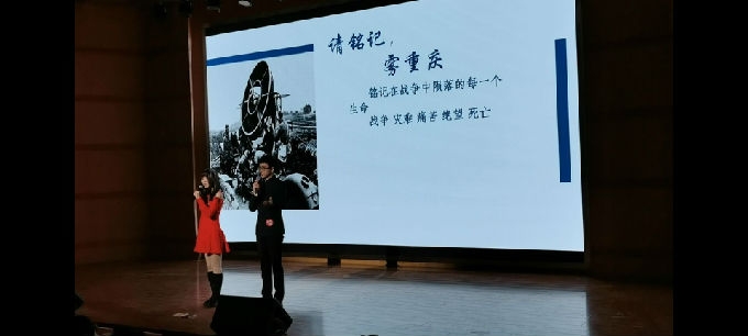 我校团委积极响应号召,经过选拔、指导、培训等准备工作,最终确定三组参赛队伍。由任乘鹤、王泽霖同学带来的作品《请铭记,雾重庆》将民族大义、英雄情怀演绎地淋漓尽致;由姜齐嘉、俞孙兴同学带来的作品《活埋》警示世人铭记历史、捍卫和平;由王曼、曾丽、李艳艳、戴文帆同学带来的作品《雪域嘶鸣》不仅展现了祖国的壮美山河、繁荣昌盛,更抒发了新时代青年立志建功立业的决心和信心。