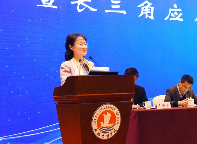 我校理事长、党委书记金秋萍在致辞中代表学校向出席论坛各位领导和嘉宾表示热烈的欢迎,介绍了学校发展历史沿革和办学成果。她表示,学校将以举办本次大会为契机,主动加强与兄弟院校的交流协作,虚心向各兄弟院校学习,深度融入长三角一体化发展大局,为推进长三角教育协作更高质量一体化发展贡献智慧和力量。
