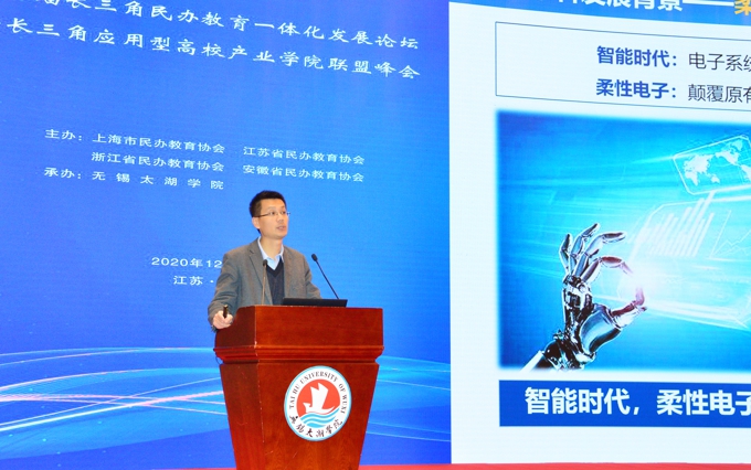 论坛期间,南京邮电大学材料科学与工程学院柔性电子研究所所长赵强教授代表中国科学院院士黄维作《“柔性电子”+未来产业》主旨报告,教育部教育发展研究中心体制改革研究室主任王烽、上海市民办教育协会副会长兼秘书长江彦桥分别作《新时代民办教育:创新发展与政策变革》《学习贯彻深化教育评价改革< 总体方案>,推进长三角民办教育一体化高质量发展》主旨报告。与会代表参观了我校办学成果展、苏格兰学院和物联网实验实训中心、智能制造实验中心、智慧养老实验中心、机器人实训中心等六大实验实训中心。