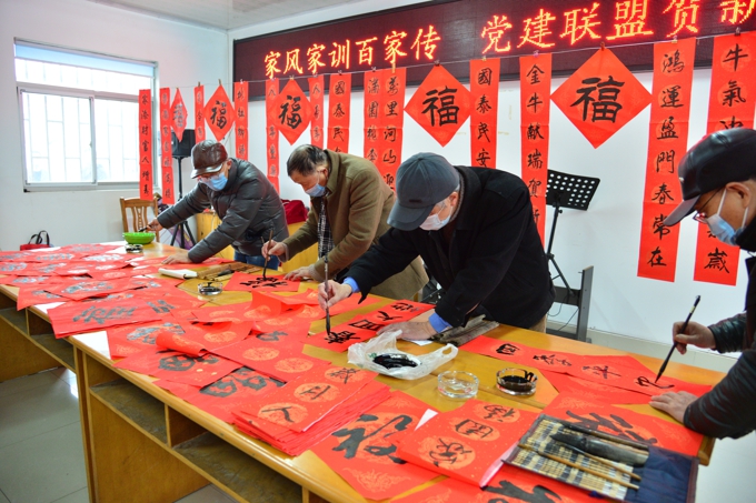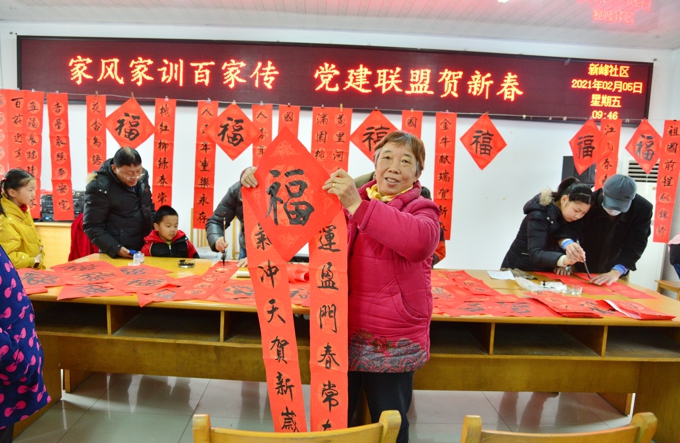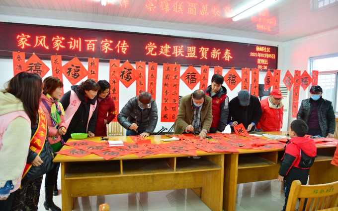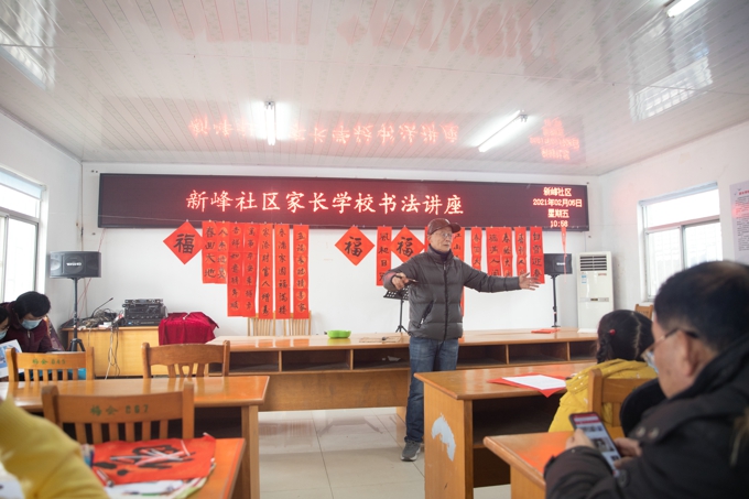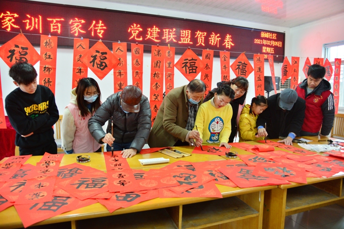 张灯结彩辞旧岁,挥毫泼墨迎新春。2月5日春节到来之际,我校与党建联盟单位新峰社区联合开展“家风家训百家传,党建联盟贺新春”活动。学校组织全校各单位的书法爱好志愿者前往新峰社区,为社区居民挥春写对联,并为寒假中的中小学生进行书法讲座,赠送书法讲义及书画作品集,送福送吉祥,为社区内的群众增添节日气氛。