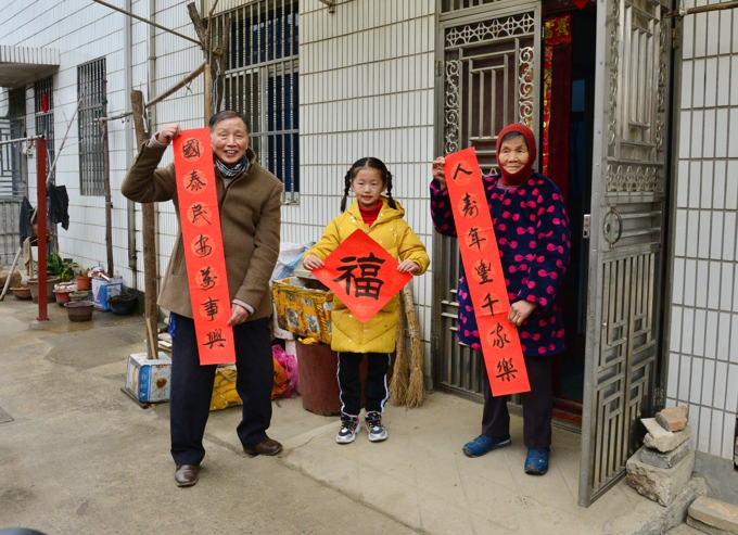 活动开始前,志愿者们将手写的十余种字体的百张福字平铺于桌面上,引大家连连称赞,活动现场人头攒动、热闹非凡。现场写的春联更是令人赞赏不绝。“尊贤敬老道德好,爱少惜才新风尚”,“文明时代诚为贵,礼义家庭孝保鲜”……志愿者们一边挥毫泼墨,一边向小朋友们解释意思,淡淡的墨香中充斥着欢声笑语,几张书桌旁聚满了等待的居民。一个个诠释美满幸福的“福”字,向社区居民提前拜年,表达新年的祝愿;一幅幅红红火火的春联表达美好的愿望,希望新年有个新气象。“感谢太湖学院的志愿者们,这是我今年收到的第一份祝福、第一份礼物”一位老奶奶抱着春联和“福”字,兴奋地道谢。