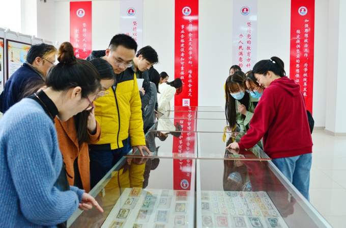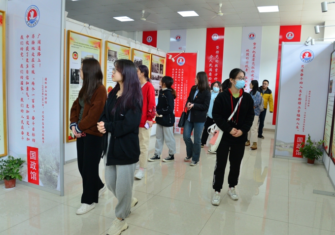 会后,全体师生党员分批参观了国政馆,现场观摩学习党史。(党委宣传部)