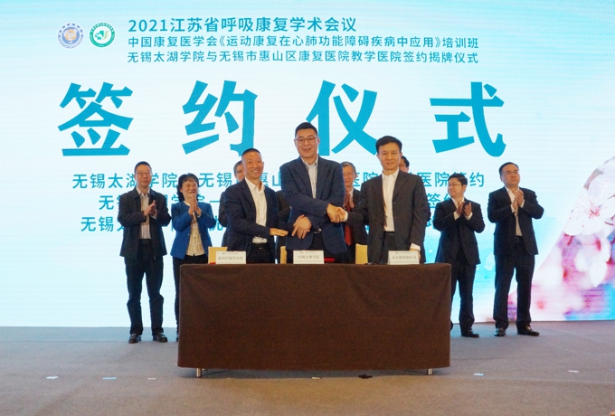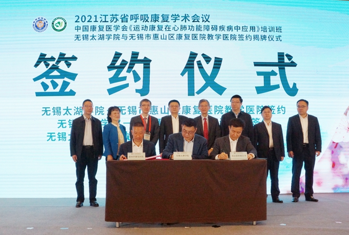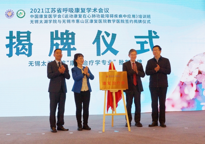 3月27日,2021江苏省呼吸康复学术会议在无锡举行,无锡太湖学院与惠山区康复医院合作,共同打造无锡康复医学特色品牌,太湖学院“康复治疗学”本科专业揭牌。无锡市副市长秦咏薪出席会议。我校理事长、党委书记金秋萍,副校长陈鹏飞参加会议。