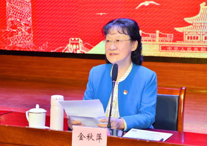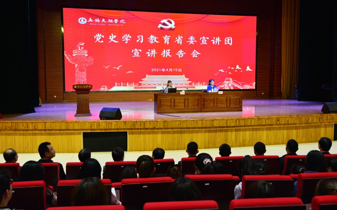 4月15日上午,根据省委统一部署,党史学习教育江苏省委宣讲团宣讲报告会在我校举行,省委宣讲团成员、南京雨花台管理局雨花英烈研究院院长向媛华以《牢记初心使命 汲取奋进力量》为题作党史专题宣讲。市委讲师团团长王铭涛,学校党委书记金秋萍,校长李廉水参加。校领导金成、丁涛、陈鹏飞、阙明坤,全体党委委员出席。全体中层干部、思政课教师、辅导员、师生党员代表和入党积极分子640人聆听了宣讲报告。报告会由校党史学习教育领导小组组长、党委书记金秋萍主持。