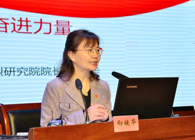 宣讲中,向媛华院长紧紧围绕习近平总书记关于党的历史的重要论述展开,系统回顾了中国共产党百年奋斗的光辉历史,生动诠释了中华民族实现伟大复兴的“三次飞跃”,充分揭示了中国共产党为什么“能”的历史启示,就开展党史学习教育的重点进行了全面解读,对学懂弄通做实习近平新时代中国特色社会主义思想作了重点辅导。向院长的报告内容丰富、深入浅出,既有理论性、又通俗易懂,对全校广大师生党员深刻领会习近平总书记关于党史学习教育的重要讲话精神和党的百年奋斗历史、深入开展党史学习教育具有重要指导意义和借鉴意义。