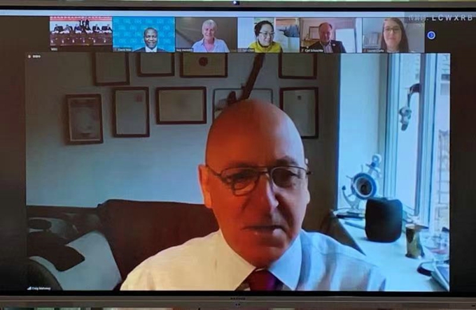 2021年4月20日下午三时(英国时间上午8点),无锡太湖学院苏格兰学院的联合管理委员会召开了第一次会议(视频会议),无锡太湖学院校长李廉水、副校长金成出席会议,英国西苏格兰大学校长Craig Mahoney、常务副校长Lucy Meredith出席会议,会议由联合管理委员会主席李廉水校长主持。出席联合委员会会议的成员还有:无锡太湖学院苏格兰学院的党总支书记兼常务副院长郑有飞,院长蒋勇,无锡太湖学院学生工作处处长兼苏格兰学院党总支副书记郑斌,英国西苏格兰大学的计算机、工程与物理学院院长Carl Schaschke,国际部主任Stephen Magee,东亚区域主管Jun Chen(兼英方翻译)。此外,英国西苏格兰大学校长助理Lauren Clark,David Ndzi(计算机、工程与物理学院合作专业协调人)和无锡太湖学院苏格兰学院副院长姚鹰(兼中方翻译),也参加了会议。