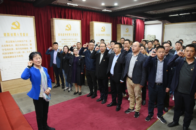 在第一支部党建基地,负责人为党员们上了一堂主题党课。他向大家介绍了无锡第一支部党建基地的诞生及发展历程,并着重宣讲了无锡党史上杰出共产党人为中华民族复兴而奋斗终身的光辉事迹。全体党员们观看了《誓言颂》党建宣传片。随后,全体党员在学校党委书记金秋萍的带领下,一起重温了入党誓词,再次感悟初心使命,进一步做到学史明理、学史增信,学史崇德、学史力行。