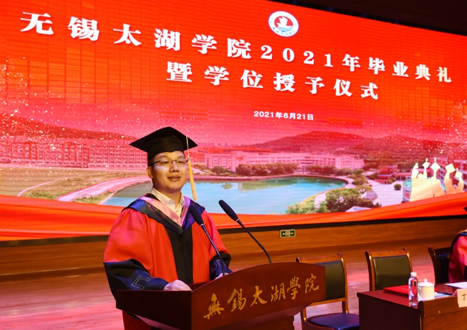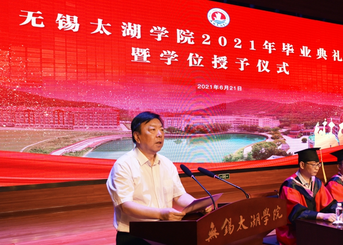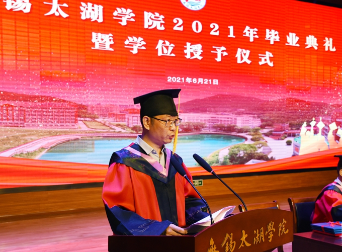 第三,坚持自强不息,书写“太湖故事”。无锡太湖学院在党引领的改革开放大潮中诞生、成长,在市场经济的洪流中发展、壮大,在激流险滩中闯出一片新天地,成为我国同类高校中的一面旗帜。希望同学们将“太湖”的校训精神传承下去、弘扬出去,做有格局的太湖人,书写更多让母校骄傲的“太湖故事”,创造更多让母校荣耀的杰出成就。