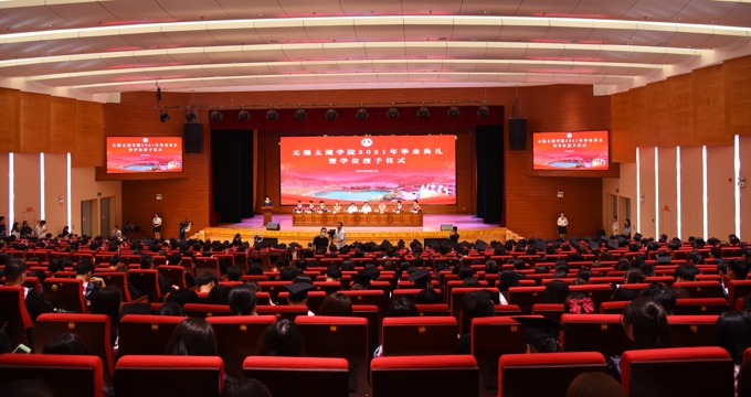 告别的时刻深怀感恩,奋斗的青春今日启航。6月21日上午,我校在工科实验大楼报告厅隆重举行2021届学生毕业典礼,庆祝又一批“太湖学子”圆满完成学业,开启人生新的征程。无锡市政协副主席丁旭初,江苏省政协教科文卫委副主任、无锡太湖学院教学委员会顾问孙玉坤,全国五一劳动奖章获得者、全国三八红旗手、全国优秀教育工作者、无锡太湖学院理事长、党委书记金秋萍,国家中长期科技发展规划战略研究重要贡献专家、享受国务院政府特殊津贴专家、无锡太湖学院校长李廉水,校领导陈鹏飞、蒋丹、阙明坤、毛兆宏,各二级学院、相关职能部门负责人,教师代表、毕业班辅导员、毕业生代表等参加毕业典礼。校党委副书记丁涛主持毕业典礼。本次毕业典礼,学校官方抖音进行了全程直播。