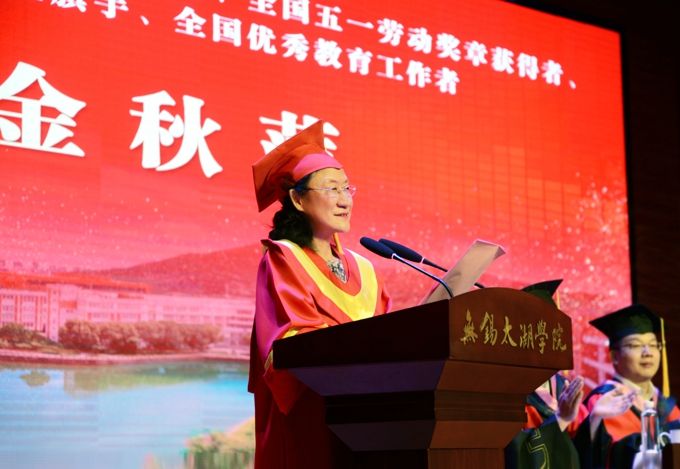 无锡太湖学院理事长、党委书记金秋萍结合党史教育系列活动,用具有无锡本土特色元素的“渡江第一船精神”、“春雷造船厂精神”、“奋斗者号载人深潜”精神等素材,为即将离开母校、奔赴社会的学子们作了题为《传承红色基因,书写“太湖故事”》的讲演,为同学们送上了一份“红色“的毕业赠礼。她给即将奔赴社会,踏上人生新旅程的同学们提出三点希望: