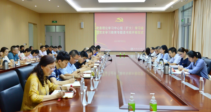 为深入学习贯彻习近平总书记在庆祝中国共产党成立100周年大会上的重要讲话精神,7月5日,无锡太湖学院举行党委理论学习中心组(扩大)学习暨党史学习教育专题读书班开班仪式在工科实验大楼会议室举办。学校党委书记金秋萍,校领导金成、丁涛、阙明坤,党委委员邹山花、吴学林、吴旻昊、周鸣鸣,党办主任朱中伟、学生工作处处长郑斌,党委宣传部相关负责人,各党总支书记、副书记,各党支部书记、副书记参加开班仪式。会议由党委副书记丁涛主持。
