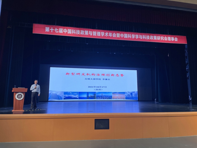 2021年10月16日-17日,第十七届中国科技政策与管理学术年会暨中国科学学与科技政策研究会理事会在深圳大学(丽湖校区)召开。中国科学学与科技政策研究会监事长、无锡太湖学院校长李廉水出席会议并以《新型研发机构治理创新态势分析》为题作了大会报告。