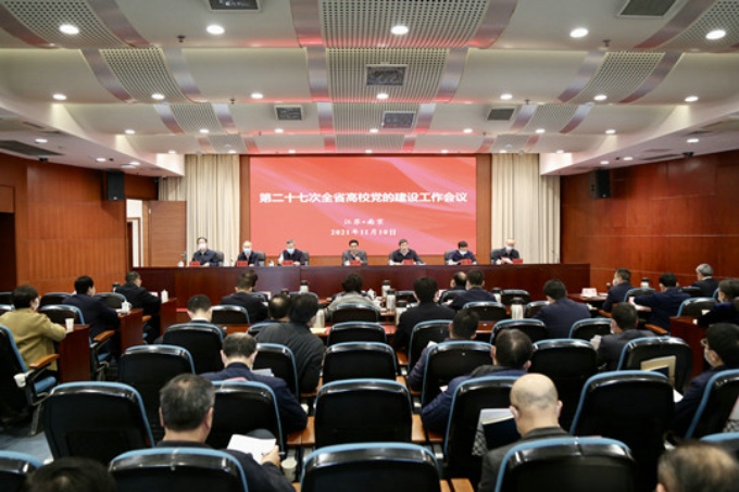 11月10日,省委组织部、省委宣传部、省委教育工委在南京联合召开第二十七次全省高校党的建设工作会议。会议深入学习贯彻习近平总书记“七一”重要讲话精神和关于加强高校党建工作的重要论述,贯彻《中国共产党普通高等学校基层组织工作条例》,落实第二十七次全国高校党的建设工作会议精神和省委有关要求,研究部署全省高校党的建设工作。省委常委、宣传部部长、省委教育工作领导小组组长张爱军出席会议并讲话,副省长、省委教育工作领导小组副组长马欣主持第一阶段会议,省委教育工委书记、省教育厅厅长葛道凯主持第二阶段会议。学校校长李廉水,校长助理阙明坤等学校领导,党办(校办)、党委宣传部、党委学生工作部、马克思主义学院等有关党建工作责任部门负责人,二级学院党总支书记、副书记,党支部书记代表在我校分会场参加。