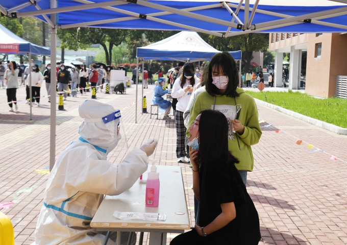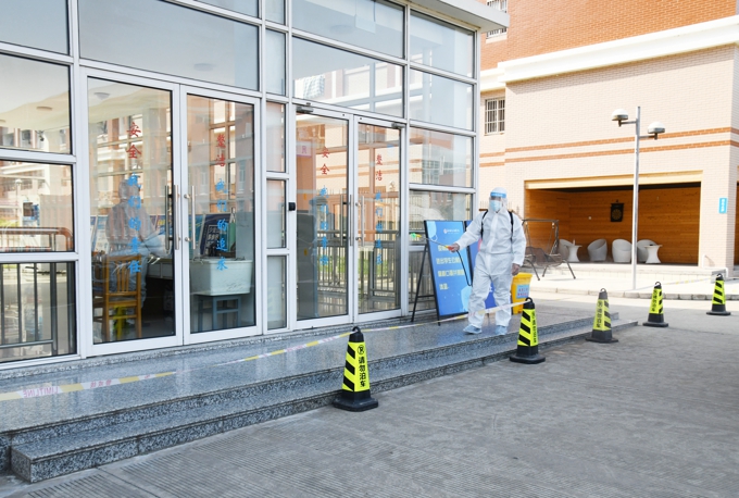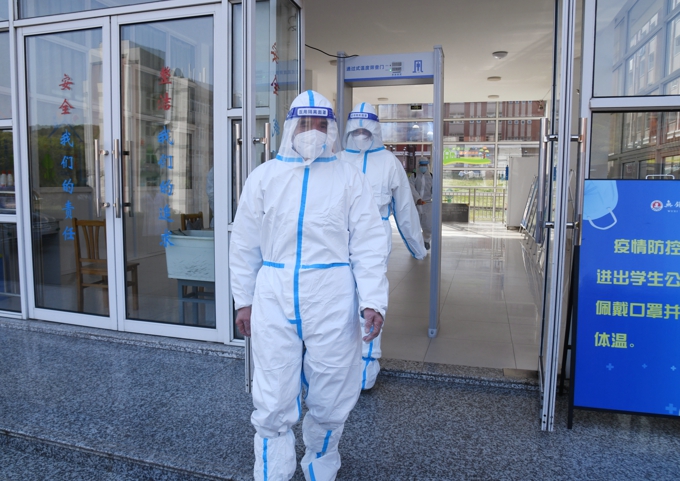 此次演练设置宿舍、食堂、办公室等多个演练场景,以我校接校医院电话通知相关人员在抗原检测中呈阳性为起始。按既定演练脚本,指挥部第一时间启动校园应急相应机制,通过校园各通讯平台宣布校园由常态化疫情防控进入应急状态,并报属地及上级有关部门;学校流调组立即针对“不适症状者(疑似感染者)”开展工作,在学工处、人事处、后勤处配合下开始流调,通知各部门对校园各场所进行封控,对校门实行不进不出管控,对疑似感染者生活、学习、工作的场所进行环境消杀工作;立即联系滨湖区防控部门进行转运,同时向市教育局、省教育厅等上级主管部门汇报;联系教育、公安、卫生健康、市场监管及街道社区工作人员和相关专家“五大员”进驻学校,成立“学校疫情处置专班”,协助疾控部门排查密接、次密接人员转运至校外集中隔离点;配合属地疾控及相关部门,对校内师生开展核酸检测。