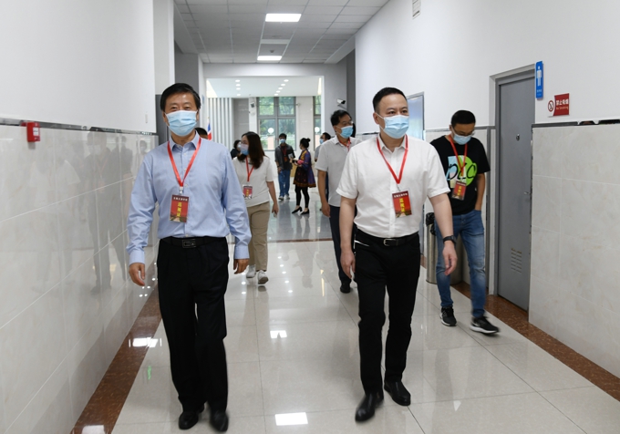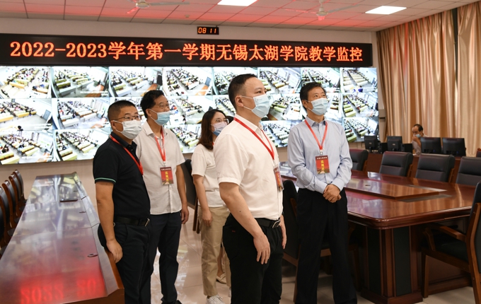 根据学校开学工作安排,9月14日,无锡太湖学院启动新学期线下教学“第一课”。为切实做好疫情防控工作、保障教学正常秩序、规范教学管理,校长金成,执行校长李廉水带队,教务处、督导办、组织人事处、学工处、设备处、信息中心、后勤基建处等部门负责人深入教学一线检查指导工作。
