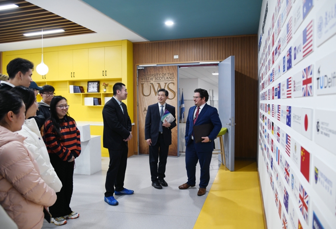 会后,新西兰驻上海总领事馆代表团代表一行参观了我校苏格兰学院实验室,并与我校苏格兰学院师生进行了亲切交谈。(党委宣传部)