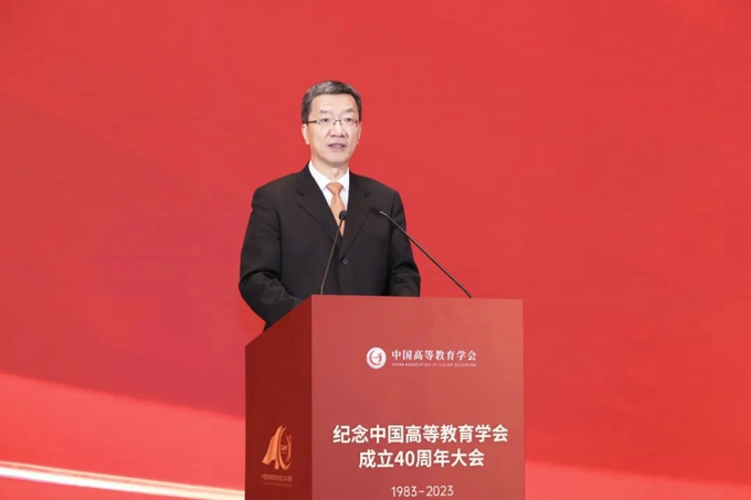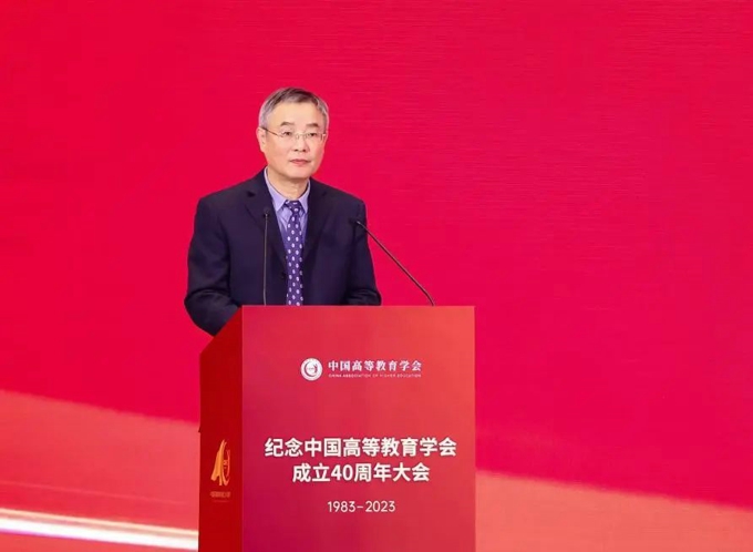 蔡达峰向中国高等教育学会成立40周年表示热烈祝贺。他充分肯定学会40年来为我国高等教育现代化建设发挥的独特作用、作出的重要贡献。他强调,在推进中国式现代化,建设教育强国、科技强国、人才强国的进程中,高等教育处于关键地位。相信学会一定会坚守初心、牢记使命,坚定正确的政治方向,为高等教育改革发展凝聚智慧和力量;一定会坚持以人民为中心,立足中华民族伟大复兴的战略高度,促进人的全面发展和全体人民的共同发展,办好人民满意的教育;一定会发挥集智聚力的作用,团结带领广大会员,构建人才高地,发挥学术引领力、提高社会公信力、扩大国际影响力;一定会加强自身建设,坚持依法办会、按章办会、民主办会,提高内部治理水平,在各项工作中体现更高站位、更有效率、更有特色、更有作为,开创学会事业新局面、新气象。