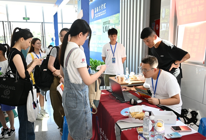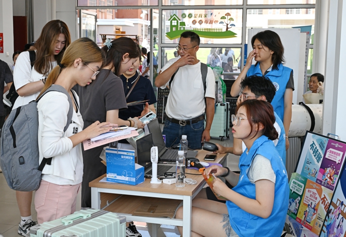 为给新生入学提供更全面的保障、更周全的便利服务,学校提前做好了全方位部署,各部门、各学院紧密协作、尽职尽责,迎新安排丰富多样,用细致、贴心、暖心的服务为同学们开启大学生活保驾护航。从无锡高铁站等交通枢纽的新生接站点,到校园的注册报到点,再到各宿舍区、生活服务区等多个与新生相关的区域,到处都有迎新志愿者们温馨的身影,他们用热忱细致的服务做好车辆接站、迎新咨询、报到引导、行李搬运等各项工作,为新生与“太湖”的初次相见留下美好的记忆。无锡市公安局滨湖分局荣巷派出所的干警们也来到校园,为同学们做普法教育,宣传反诈知识。