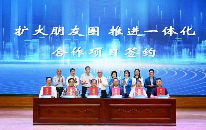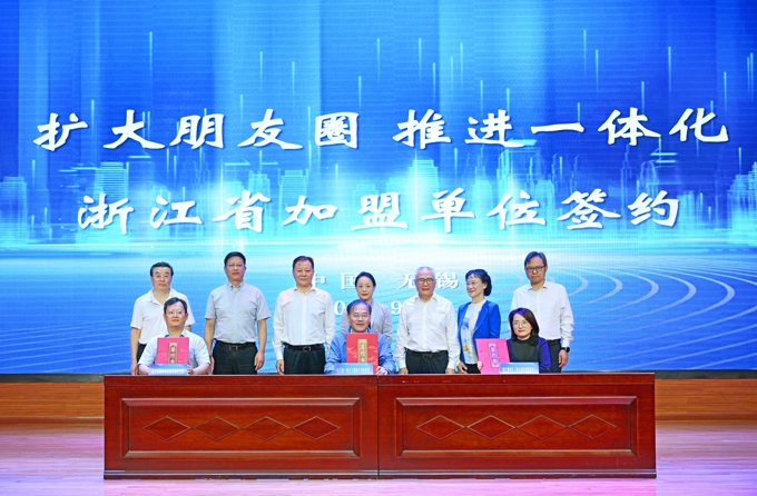 9月26日,由长三角一体化太湖融合创新联盟主办的“扩大朋友圈 推进一体化”六城市加盟暨合作项目签约仪式在我校举行。无锡市副市长卢敏,连云港市副市长高圣华,联盟轮值主席、无锡太湖学院理事长金秋萍等领导出席活动并致辞。来自湖州、嘉兴、马鞍山、滁州、南通、连云港六地的多家单位正式加入联盟,进一步扩大了长三角“朋友圈”。