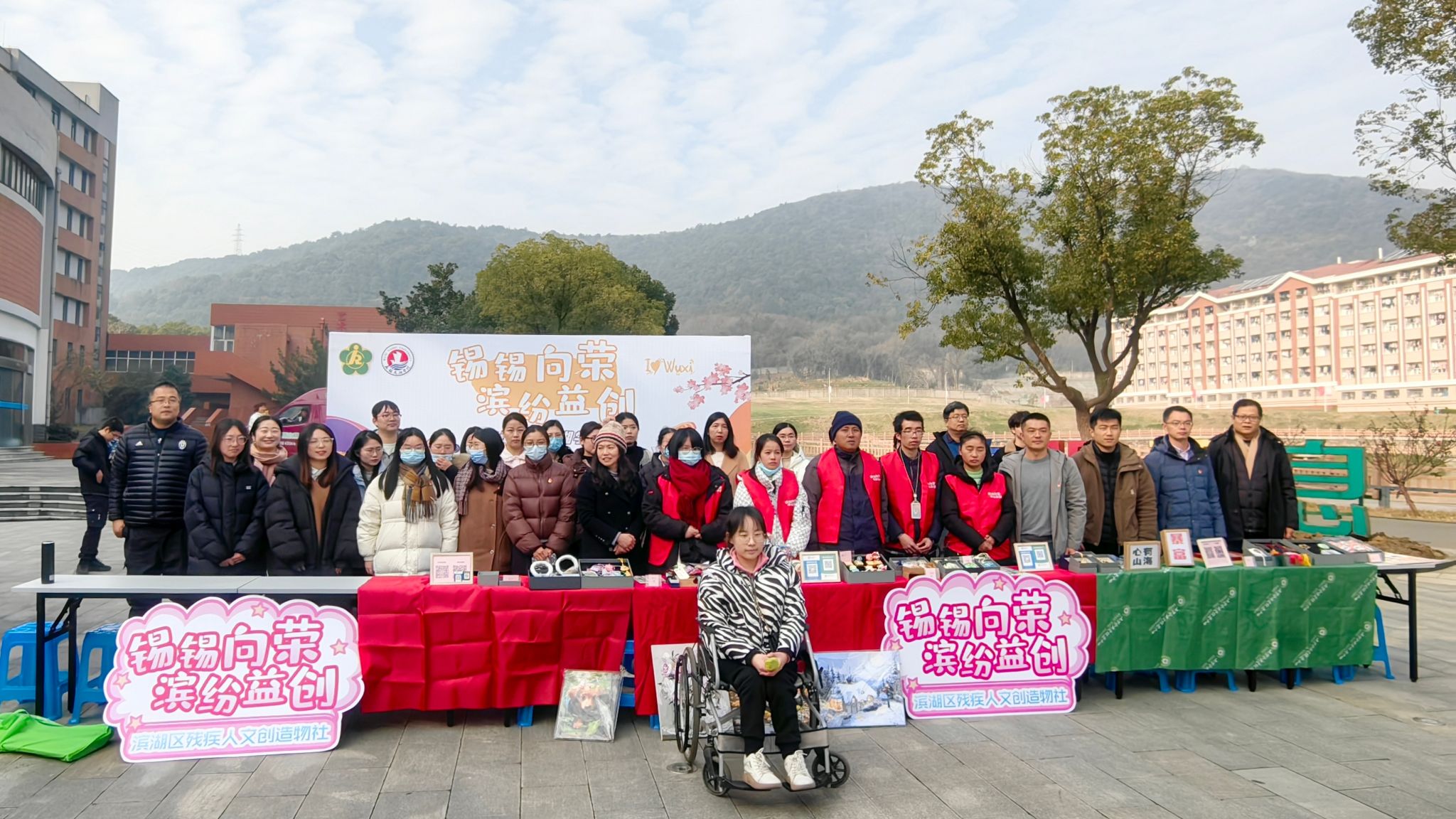 2023年12月27日由物联网工程学院党总支与无锡市滨湖区残疾人联合会联合主办、无锡市山百合关爱促进中心承办“锡锡向荣、缤纷益创”义卖活动在我校6号楼后湖畔举办。滨湖区残疾人联合会副理事长缪卫平、物联网工程学院党总支副书记沈峰及全体党员同志出席了本次活动。