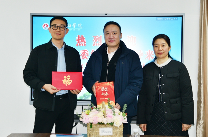 1月30日下午,无锡市委统战部副部长刘列、知新处处长王宝林一行3人专程来到我校,代表市委统战部走访慰问无锡市人大代表、我校校长金成。学校校长金成热情接待了来访客人。