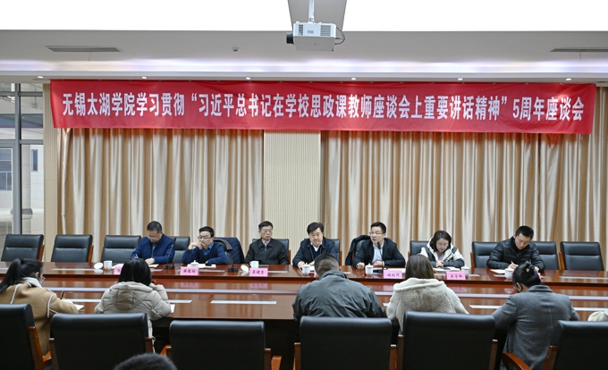 3月18日下午,无锡太湖学院召开学习贯彻“习近平总书记在学校思政课教师座谈会上重要讲话精神”5周年座谈会。继续深入学习领会习近平总书记在2019年3月18日学校思想政治理论课教师座谈会上的重要讲话精神,总结过去五年来学校思政课程建设成绩,交流研讨学校思政课程建设工作。学校党委书记孙玉坤,副校长阙明坤、吴健荣出席会议。学生工作处处长吴学林、组织人事处副处长曹建君、马克思主义学院副院长陆启义,思政课教师代表参加会议。会议由党委宣传部副部长薛德祥主持。