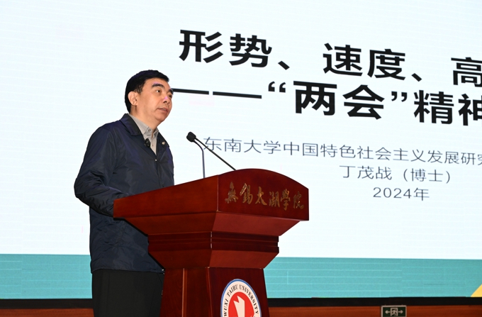 东南大学中国特色社会主义发展研究院首席专家丁茂战教授、中国科学院南京地理与湖泊研究所二级研究员陈雯,分别以《形势、速度、高质量——国务院政府工作报告精神的三大要点》 《长三角一体化:分工、合作与高质量》为题作了主题演讲。