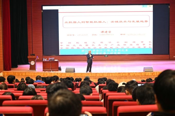 谭院士首先深情回顾了对于人生产生重要影响的时间节点及人生经历。其中谈到他出生于一个特殊的时期,儿童到少年时期的记忆最深刻的就是饥饿。初中毕业后为了解决温饱问题进入机床厂做技术工人,后来在中央广播电视大学开始招生的时候,他凭借对知识的渴望和追求,把握住了弥足珍贵的机会,一跃成为电大的首届学生,仅用3年时间他就修完了机械工程和电子工程两个专业的课程。随后,他又以优异成绩考取华中科技大学机械学专业的研究生,并以优异的成绩毕业后入职浙江大学,还跨专业攻读了应用数学专业理学博士学位。在浙大工作期间,他多年如一日地投身科研工作并取得出色的研究成果,成为首届国家杰出青年科学基金获得者,2007年当选中国工程院院士。谭院士勉励广大学生要珍惜今天宝贵的学习机会,要培养良好的学习习惯与毅力,要始终保持着对科研、学习的热情和追求。