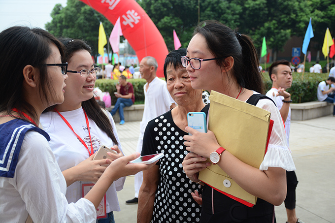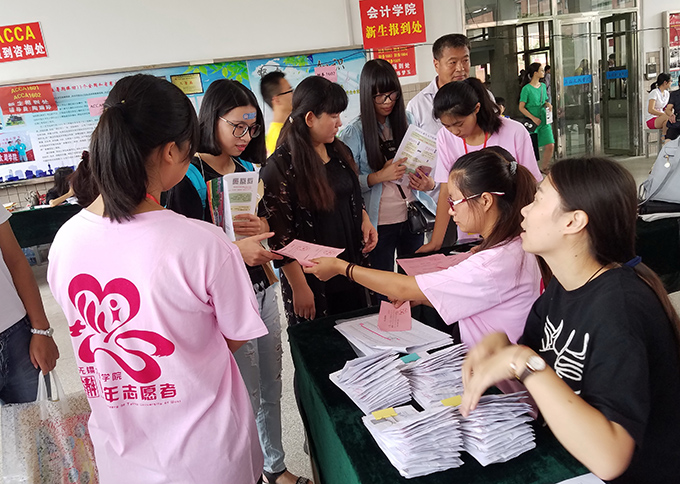10日早上7时许,我校迎新生志愿者的身影已出现无锡火车站、汽车站,热情迎接每一位远道而来的新生。而在校门口、停车场、报到处,一件件“粉色T恤”活跃在人群里,成为了校园一道亮丽的风景线。这是全校1200多名学生志愿者,在按照各自分工,紧张有序地为新生提供周到、细致的服务。有的热情地向新生介绍学校情况,有的引导新生到报到处办理手续,有的帮助新生家长搬运行李,他们说得最多的一句话,就是“跟我走,我带你去”。