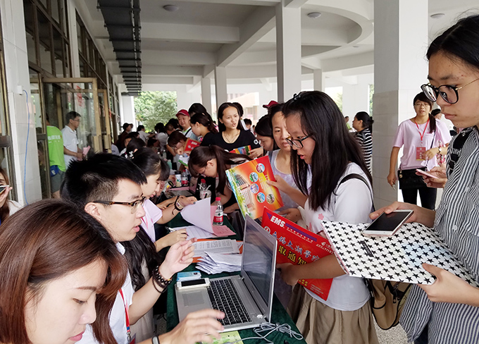 “一卡通、一站式”服务,成为学校迎新工作一大亮点。为优化迎新工作流程,让新生们享受“数字化、人性化、智能化”服务,今年学校进一步完善了信息化迎新系统,各个学院报到处配备“新生报到 PASS-PORT”,只需扫描录取通知书,即可完成全部报到手续。新生办理缴纳学费、宿舍登记、领取宿舍钥匙、发放校园卡等,全程只要几分钟,跟往年相比大大简化了报到程序,缩短了报到时间,深受新生和家长赞誉。