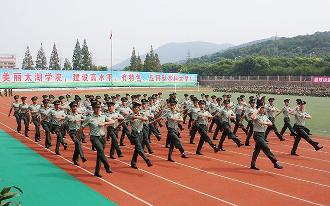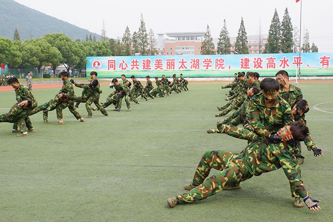 大会进行了分列式表演,场面宏伟,气势磅礴,同学们英姿飒爽、意气风发,坚实有力的步伐,高昂嘹亮的口号,充分展示了太湖学子昂扬的斗志、饱满的激情和亮丽的青春。接着进行的擒敌拳、刺杀操和格斗表演等,同学们个个稳健有力,人人挥洒自如,博得了全场一阵阵热烈掌声。