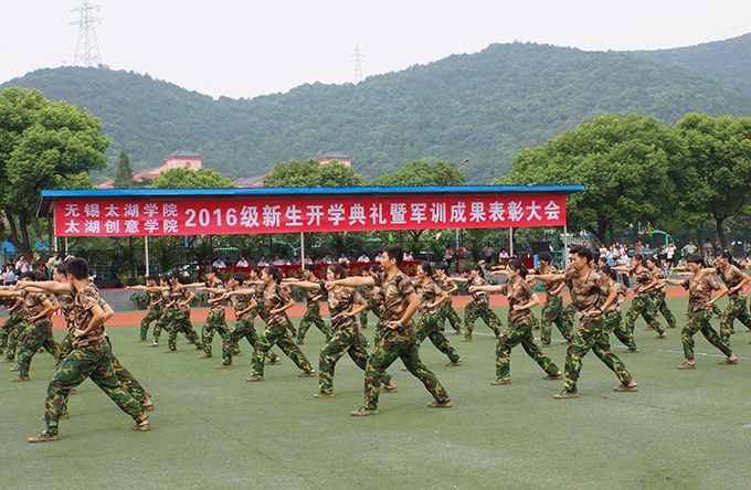 在庄严的国歌中,2016级新生开学典礼暨军训成果表彰大会拉开帷幕。接受检阅的5000多名新生以整齐的队形排列在会场中央,副校长何宏金,校长助理、太湖创意学院院长陈鹏飞检阅军训队伍,对全体新生致以亲切的问候。