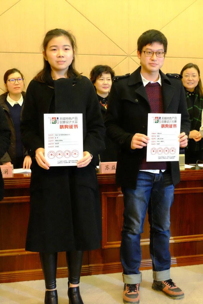 大赛组委会共收到参赛作品1718件,经评审专家委员会分类评选、综合复议、投票决选,共评出大赛获奖作品153件,分别为评委会大奖2件、金奖5件、银奖9件、铜奖22件、优秀奖85件;“品牌无锡”专项赛事一等奖1件、二等奖2件、三等奖5件、优秀奖22件。据有关人士介绍,目前,不少优秀作品已被制作成成品,未来将批量生产。