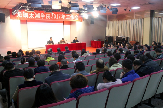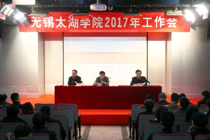 本网讯 3月2日,无锡太湖学院在南区音乐艺术中心报告厅举行2017年工作部署会,徐从才校长作2017年学校工作部署,校党委副书记陈志龙作2017年学校党建工作部署。校领导丁涛、金成、陈鹏飞、闵光泰、张凯出席会议,全体中层干部,院长助理、处长助理,各系、各教研室、实验室正副主任,各学院教学秘书、学工秘书、行政秘书等参加了会议。副校长王心如主持会议。