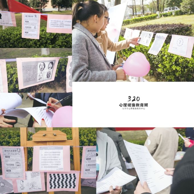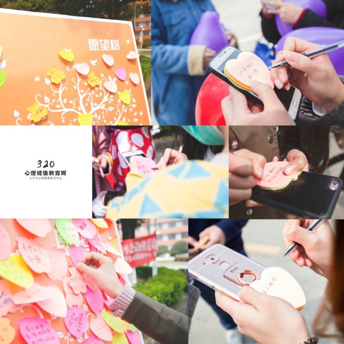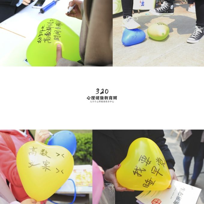 大学生心理健康教育是高校思政教育工作的重要内容, 是培养高素质人才的重要环节。“320·咱爱您”心理健康宣传活动,以“微笑,让生活更美好”为主题,21日在六号楼前广场闪亮登场。本次心理健康宣传活动分为“愿望树”、“我们一起传递微笑”、“爱的抱抱”、“心理趣味测验”、“心理健康知识展”等五个板块,吸引了众多学子踊跃参与。大家纷纷将愿望写在心形便签纸上,贴到愿望树;将烦恼写在气球上,然后或抱或踩,让烦恼在顷刻间烟消云散。大学生心理健康教育中心还展出了心理健康知识卡,并向过路学生发放,邀请他们进行心理趣味测验,了解自己的心理健康状况。