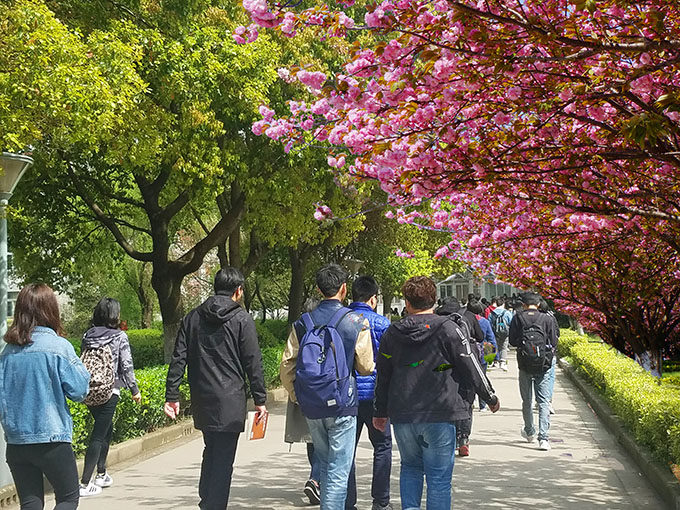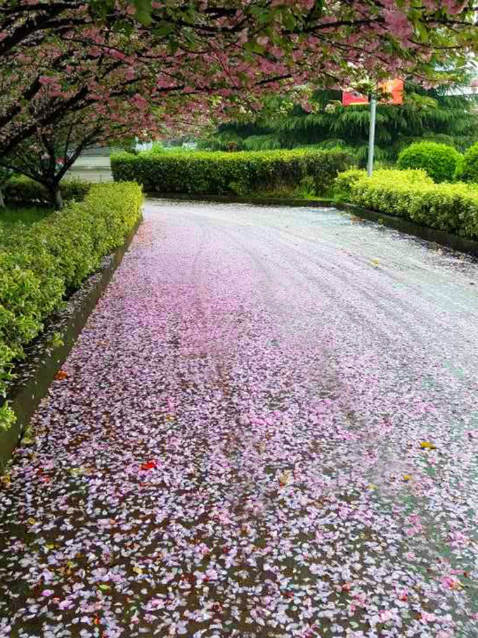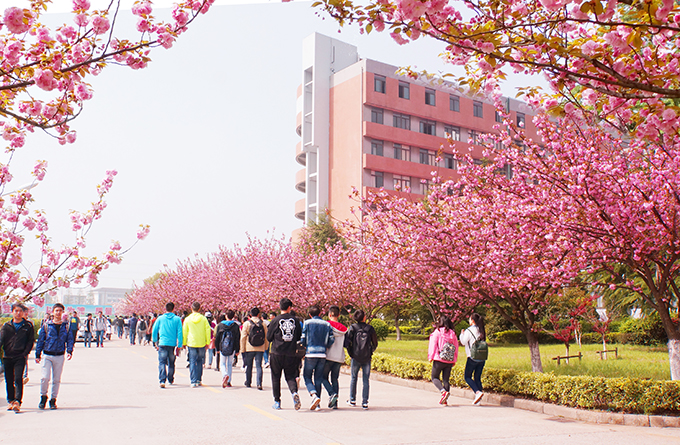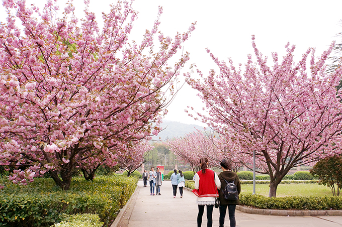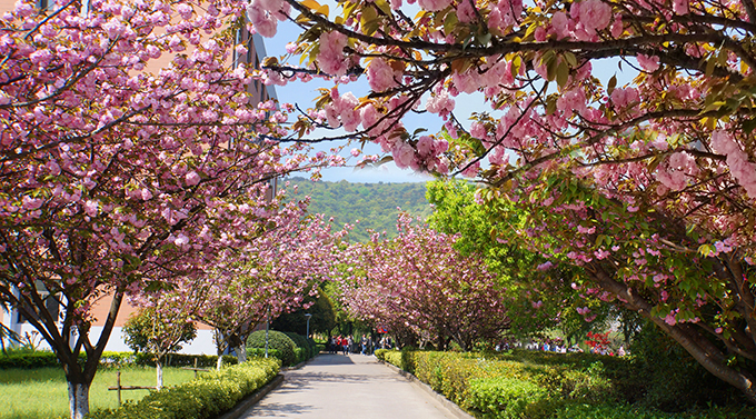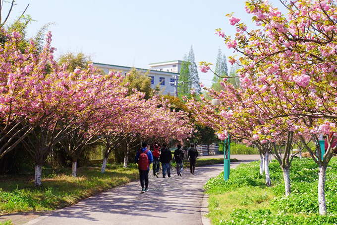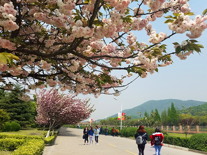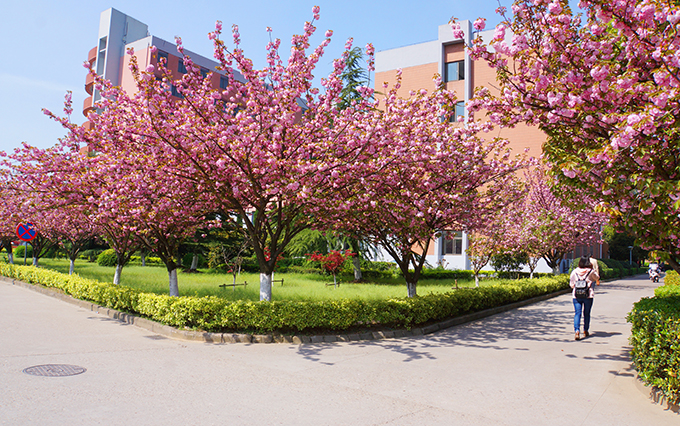 芳菲四月,校园如画。每月四月上中旬,在无锡太湖学院6号、7号教学楼等楼旁路边,樱花竞妍,满树烂漫,如云似霞。一阵清风起,满眼樱花雨。