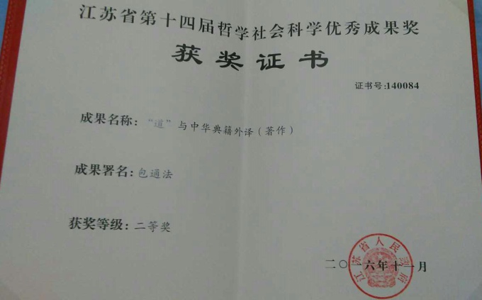 本网讯 6月9日从学校科技处获悉,我校科研工作又添一份重量级学术成果:太湖学院外国语学院院长包通法教授10年磨一剑,著作《“道”与中华典籍外译》荣获第14届江苏省哲学社会科学优秀成果二等奖。