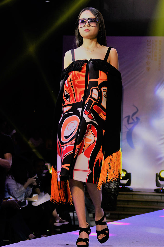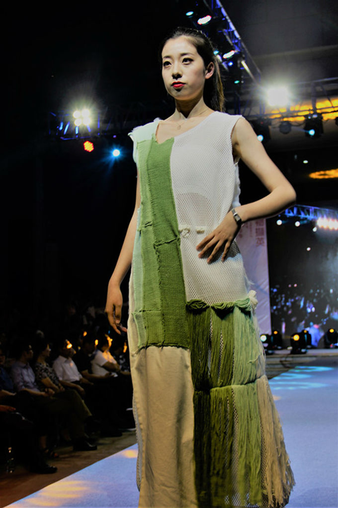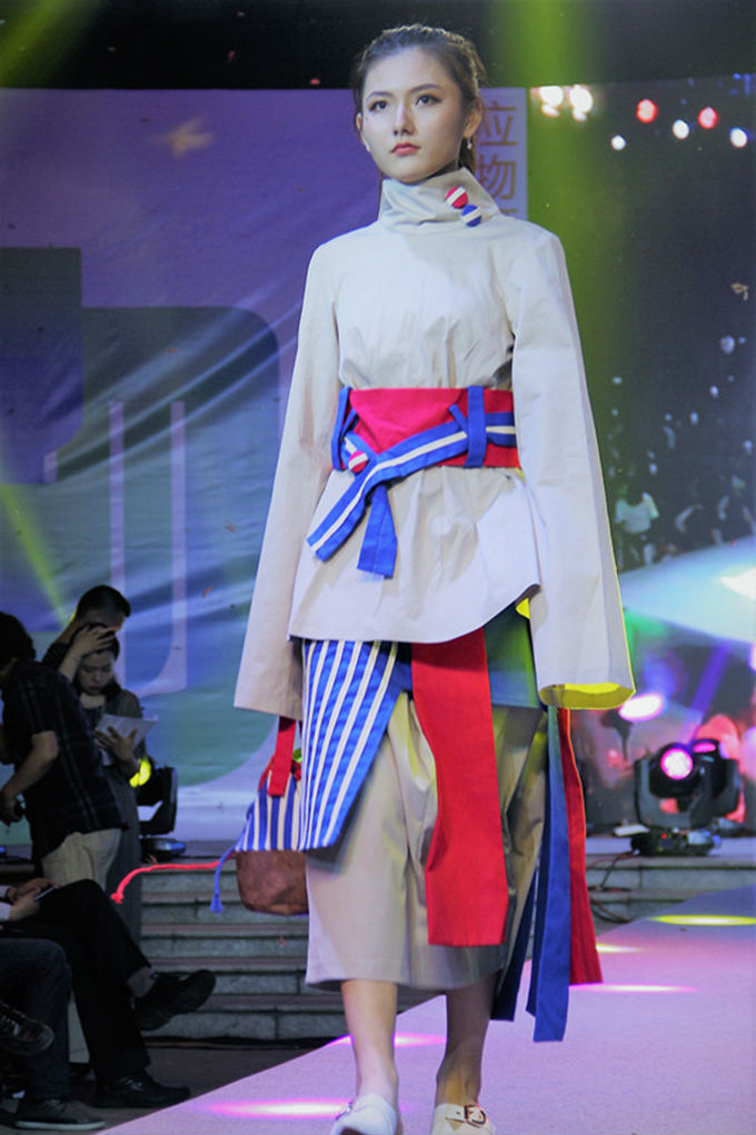 一曲 “相亲相爱”拉开了表演的帷幕。首先登台亮相的玩趣少年团,她们有着各式各样的艺术名字:超级马丽、梵高之眼、原.构……一位位穿着学院设计服的模特依次走在台上,宛如一场时装表演秀。她们身上的朝气深深打动着台下每一位观众,即将毕业的他们将其对于世界独道的见解,用艺术的形式传达给人们。接着,毕业生们把碰撞与交织的视觉冲击,与服装设计融为一体,将她们的设计天赋展现得淋漓尽致。竹蜻蜓、麻雀、荒野猎人……一个个生龙活虎的系列名字,充分体现了大学生的阳光活力。T台模特们更是将这种艺术美感渲染得惟妙惟肖,观众们掌声阵阵。随后,陶笛的 “江湖途”独奏将表演带入后半段。异像、后印象、无彩印象……一个个标新立异的设计作品令人赏心悦目;渔歌、凤凰涅槃、漫游者……历史与未来的结合让人们看间无尽的可能性。最后,古筝的合奏“喜奔那达慕”将演出推向高潮。T台模特们将现代与传统的融合,完美地诠释给观众。两首深情的合唱让我们告别当晚温暖而难舍的美好时刻。