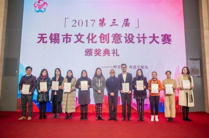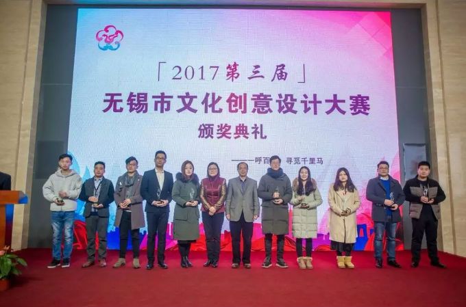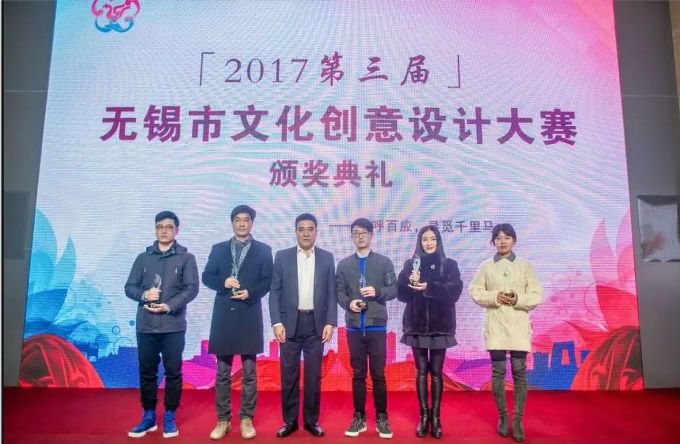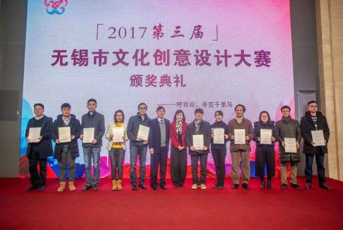 2017第三届无锡市文化创意设计大赛颁奖典礼于2018年1月4日上午10点在无锡市博物院隆重举行,无锡市委常委、宣传部长袁飞,市委宣传部副部长、市文联党组书记陆惠玲,市文广新局局长杨福良等市领导出席颁奖典礼并为获奖选手颁奖。我校艺术学院副院长朱宗明教授率产品设计系邵炜丹主任、蒋满群老师,视觉设计系龙佳骊副教授、宋佳音副教授、廖春苗老师、臧小鹿老师及获奖学生参加了颁奖典礼,朱院长代表艺术学院领取了优秀组织工作奖,6位教师分别获得了优秀指导老师奖,这也是无锡太湖学院艺术学院连续三次在该项比赛中获得佳绩,丰富的成果离不开老师辛勤耕耘和同学们努力付出。无锡市文化创意设计大赛自2015年首次举办以来已连续举办三届,吸引了10多个省市的选手参赛,共收到3000余件优秀作品,该项竞赛已逐步成长为业内公认的泛长三角区域性文创设计品牌赛事。