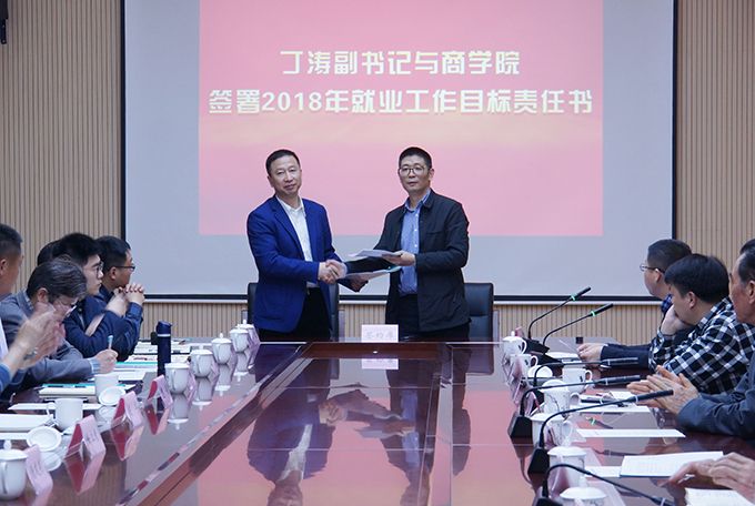 会上,党委副书记丁涛与各二级学院签署了2018年度就业工作任务书,明确就业工作目标责任人和责任目标。