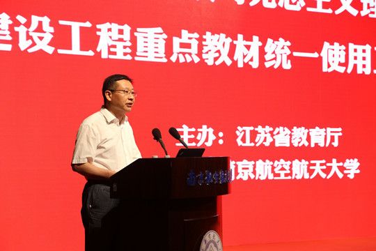 会上,马克思主义理论研究和建设工程办公室专家、中国传媒大学教授丁俊杰以《从“马工程”建设的角度,认识、理解中国特色的广告学》为题作报告,南京航空航天大学校长聂宏作交流发言。教育部教材局相关处室负责同志,高等教育出版社相关部门负责同志,全省普通本科高校、独立学院的分管校领导,教务部门、马克思主义学院、哲学社会科学所涉学院的主要负责同志等近400人参加会议。
