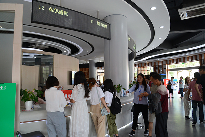 为优化迎新工作流程,让新生们享受“数字化、人性化、智能化”服务,学校进一步完善了信息化迎新系统,各个学院报到处配备“新生报到 PASS-PORT”,只需扫描录取通知书,即可完成全部报到手续。新生办理缴纳学费、宿舍登记、领取宿舍钥匙、发放校园卡等,全程只要几分钟,大大简化了报到程序,缩短了报到时间,提高迎新工作效率,深受新生和家长赞誉。
