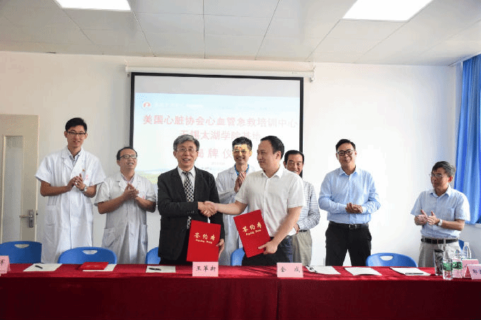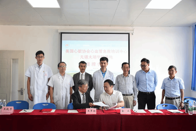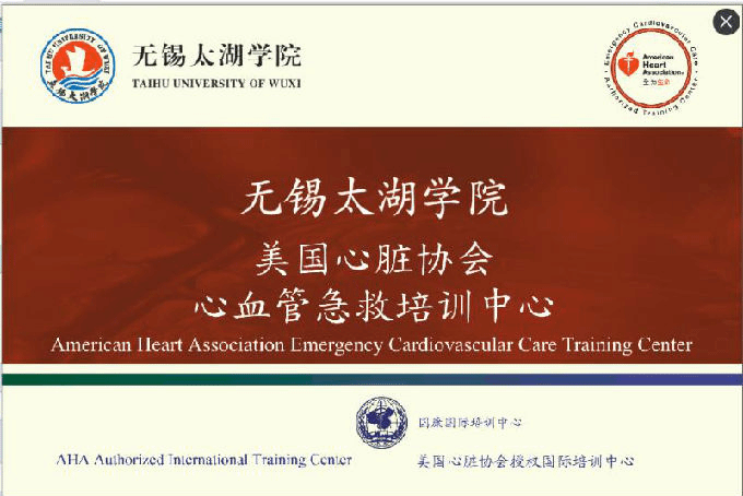 美国心脏协会创建于1924年,是世界上历史最长和最大的自愿健康卫生组织之一,也是全球心血管领域最权威的专业组织之一,长期致力于对抗心脏疾病和卒中及全球范围内基础生命支持(BLS)、高级生命支持(ACLS)培训,旨在推广心肺复苏(CPR)技术在专业医疗救护人员与公众的普及。全球大约有80%以上的国家均使用其制定的急救指南和培训课程。AHA制定国际心肺复苏指南,开发和提供高质量、高效率的基本生命支持(BLS)、高级生命支持课程(ACLS)和急救培训课程。目前,AHA在全球已经拥有了100个国家3200多个培训中心。此次“无锡太湖学院美国心脏协会心血管急救培训中心”是无锡地区首家AHA培训中心,也是无锡太湖学院建立的首个国际培训中心。