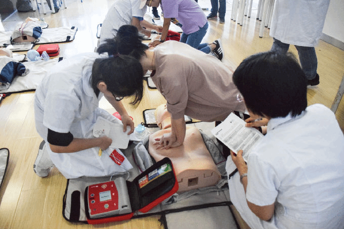 揭牌仪式后,培训中心举办了基础生命支持(BLS)课程培训班,共有24名学员参加。整个培训采用是边看视频边练习的方法,更多的注重实际操作。学员们在导师指导下使用模拟人进行反复练习,经过严格训练和考核,最终24位学员和6名BLS导师顺利通过笔试和技能考核,获得由AHA签发的国际通用BLS证书。