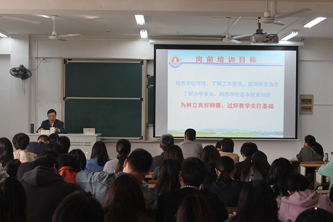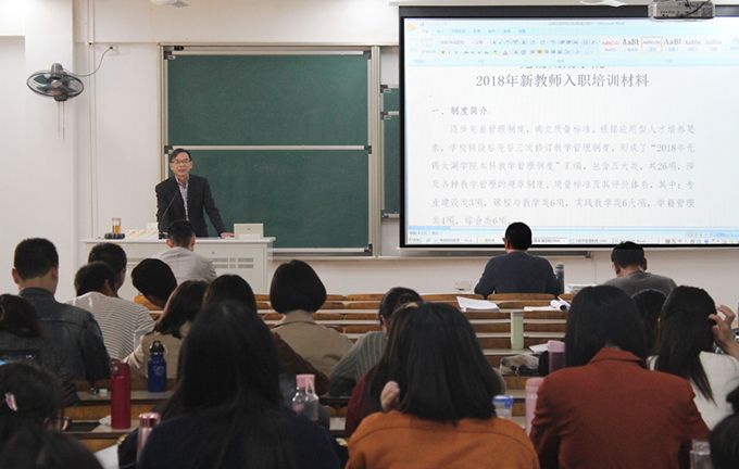 金成副校长在会上致辞,向新入职教师的到来表示热烈的欢迎。他指出,师者,传道授业解惑也,希望此次培训能够引导大家投入教育教学中,提高学校教育质量,为本学期顺利通过教育部的本科教学工作合格评估打下坚实基础。他强调,要牢记教师的神圣使命,坚持立德树人、教书育人,开展应用型科研。作为一名高校教师,要做学生成长路上的指路人与引导人,要关爱学生,坚定理想,不忘初心,牢记使命。