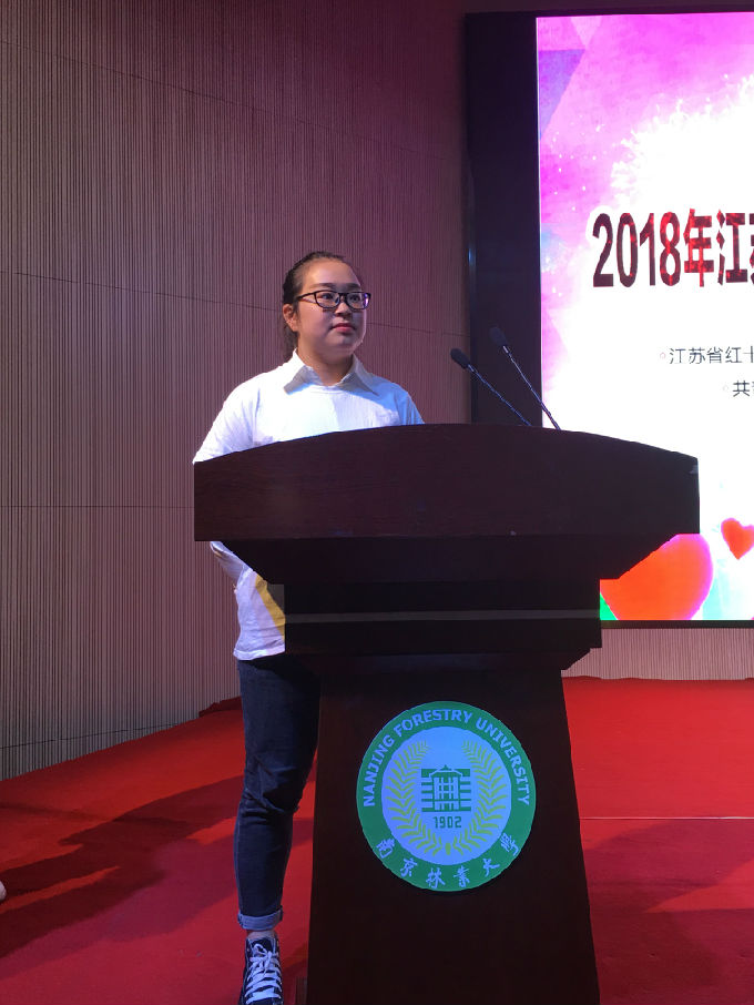无锡太湖学院志愿者代表——护理学院章恒同学上台发表答辩。据悉,全省高校红十字会以红十字青年志愿者为主力军,围绕“学习雷锋、关爱生命、传播爱心、服务社会”志愿服务主题,累计11万余名高校红十字志愿者深入城乡,开展了丰富多彩、卓有成效的暑期志愿服务活动,受益人数超过90万人。此外,“博爱青春”项目还多次获得大奖!