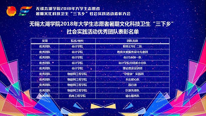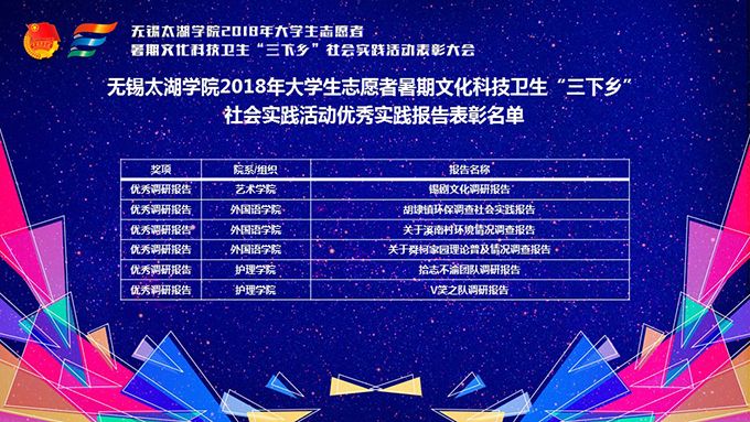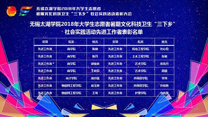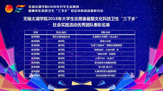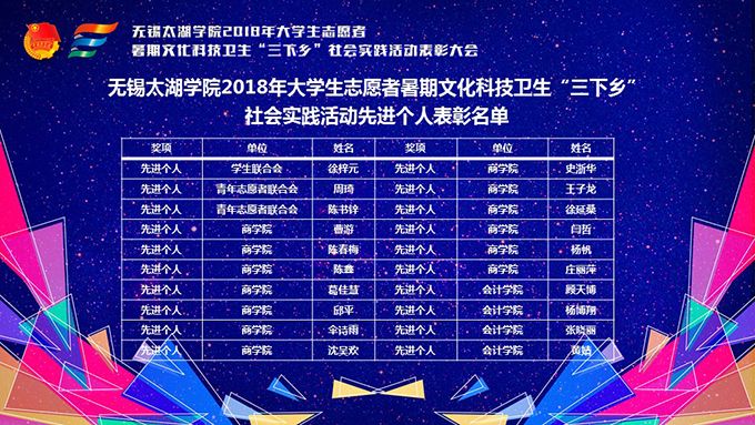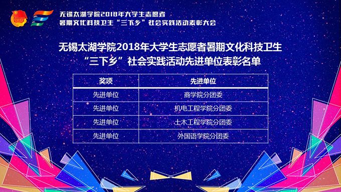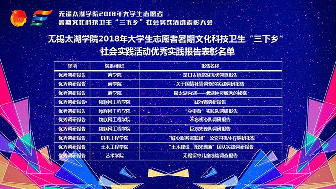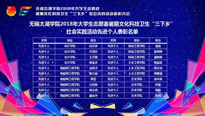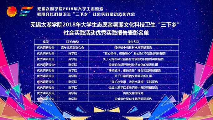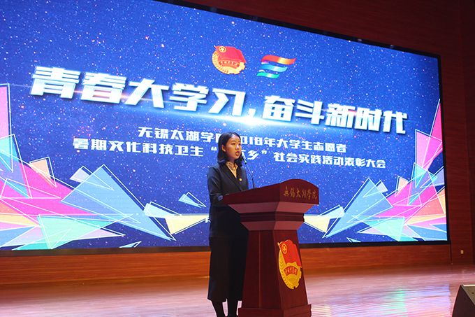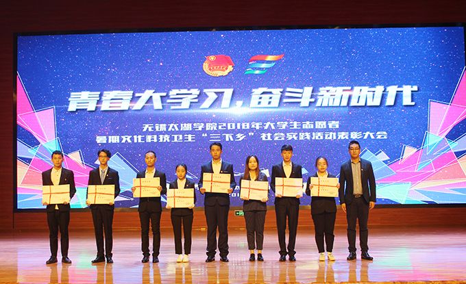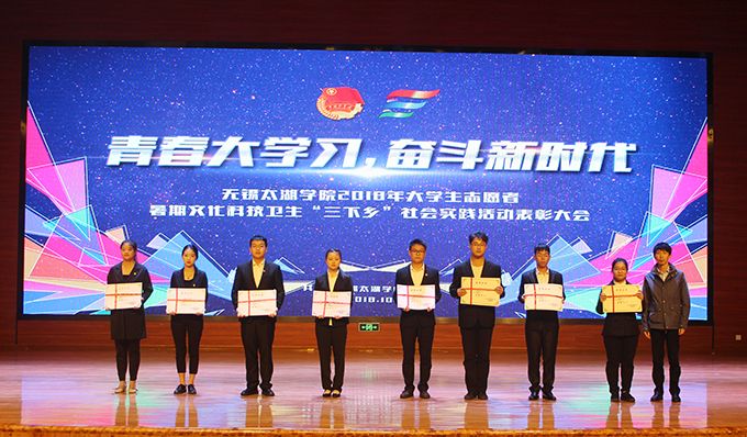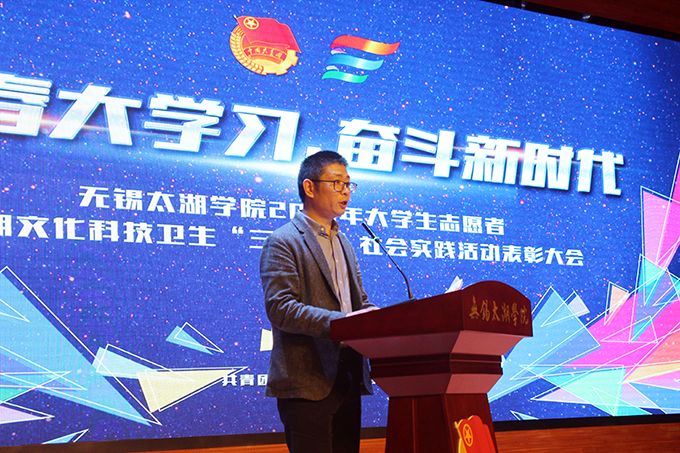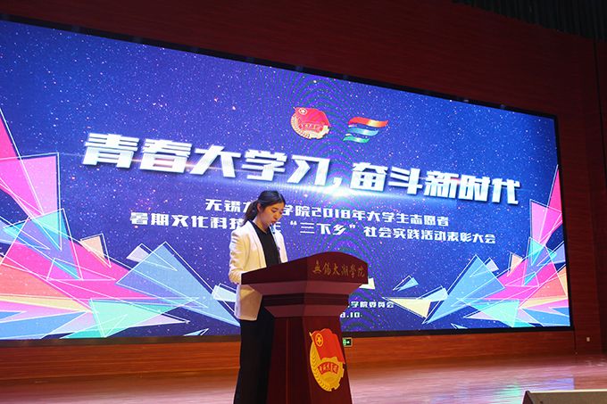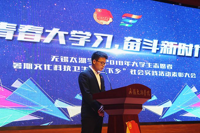 会议伊始,校团委副书记陈朕宣读《2018年“三下乡”暑期社会实践活动表彰决定》。表彰决定授予商学院分团委、机电工程学院分团委、土木工程学院分团委、外国语学院分团委4个团学组织“社会实践先进单位”荣誉称号,授予太湖青年(连云港)支教队等30支队伍“社会实践优秀团队”荣誉称号,授予徐梓元等50名同学“社会实践先进个人”荣誉称号,授予陈娴等14名教师“社会实践先进工作者”荣誉称号,授予“无锡市残疾人托养中心”等9处社会实践基地“优秀社会实践基地”荣誉称号,授予《稼依镇小石桥村水质调研报告》等26篇社会实践调研报告“优秀实践报告”荣誉称号。同时,陈书记表示希望受表彰的先进个人和集体珍惜荣誉,再接再厉,进一步加强我校社会实践活动内涵建设,注重深度、创新模式、深化成果、扩大影响,为推动我校暑期社会实践活动迈上新台阶做出贡献。