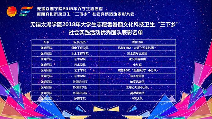 本网讯 10月26日,无锡太湖学院2018年暑假“三下乡”社会实践活动表彰大会在工科实验大楼报告厅顺利召开。校党委副书记丁涛、校团委副书记陈朕、学院党总支副书记蒋昊霖、俞昊波、余波、胡宇和学院分团委兼职书记出席表彰大会,各级团学组织、基层团组织、“三下乡”团队代表参加本次“三下乡”表彰大会。