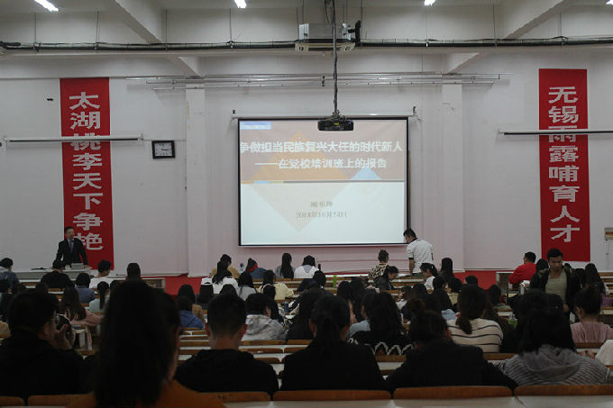 马克思主义学院副院长陆启义对“新时代的中国特色社会主义发展宏图”进行了讲解。他告诫青年学生要居安思危,正确认识世界大环境,同时要不忘初心,牢记使命,为实现社会主义现代化和中华民族伟大复兴不懈奋斗。马克思主义学院吴禹江老师、孙艳艳老师分别从中国共产党的组织、纪律和作风,党的性质、宗旨和指导思想等方面进行了讲解。党校办公室衡延笃老师就“青年学生与中国共产党”进行讲解。他从“党和国家领导人历来重视青年工作”、“青年大学生的历史使命、人生追求”、“积极加入中国共产党是青年大学生的正确选择”等方面与学员进行交流,他指出,确立崇高的理想,是当代青年大学生的积极选择,也只有把自已的人生投入到为祖国和人民服务的事业中,才能使自已的人生显得充实、亮丽而有意义。